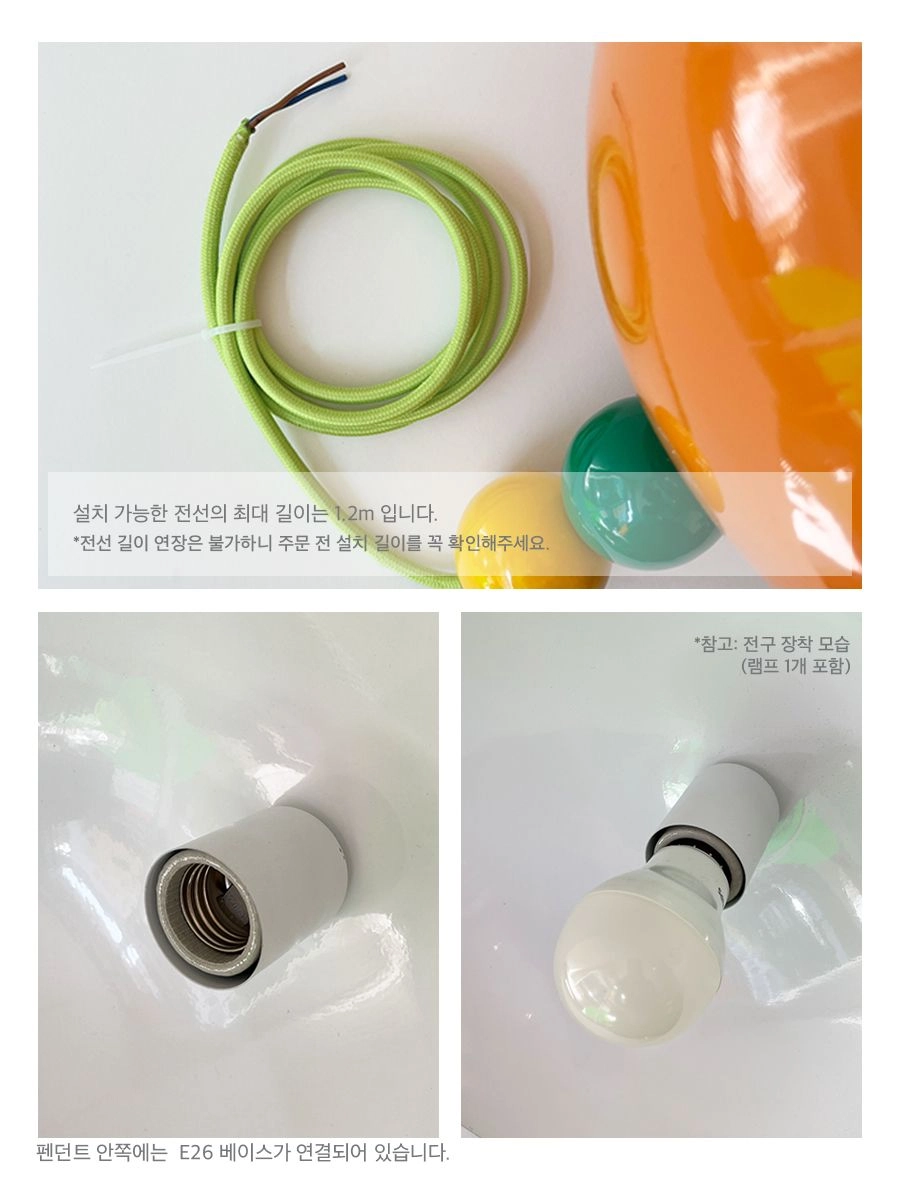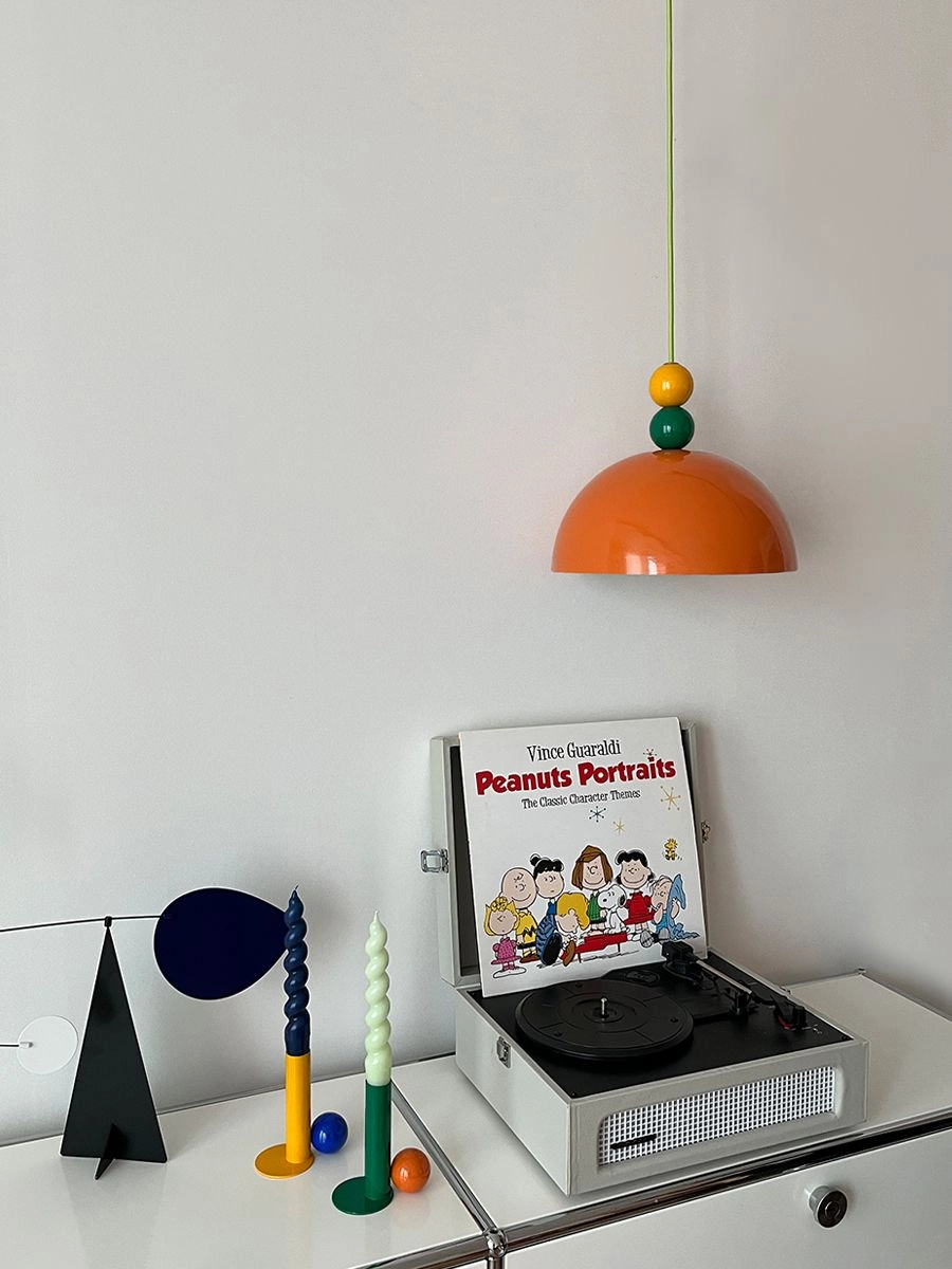 • A pendant light suitable for dining tables, bedroom corners, or dressing rooms. Its striking colors bring new energy to otherwise plain spaces.