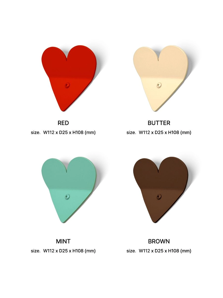 • Available in 4 colors — Red, Butter, Mint, and Brown — each hook comes with a matching colored screw for mounting.