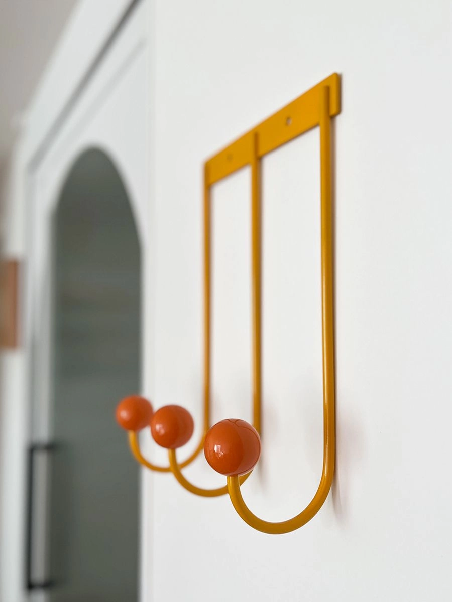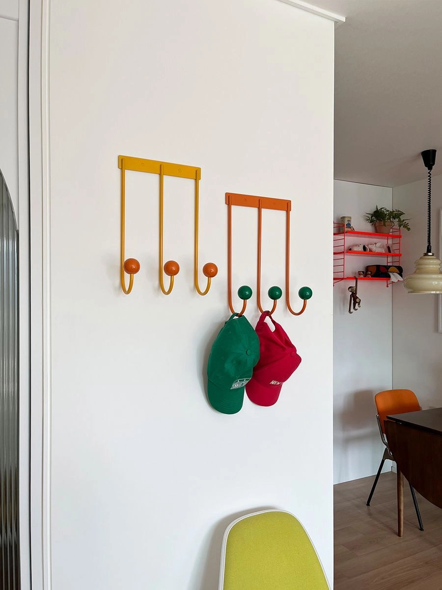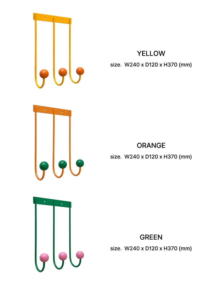 • Practical and stylish, the ColorDrop Wall Hook adds a point of interest to plain walls with its rounded form and lively color combination — perfect for hanging bags, hats, and daily essentials.